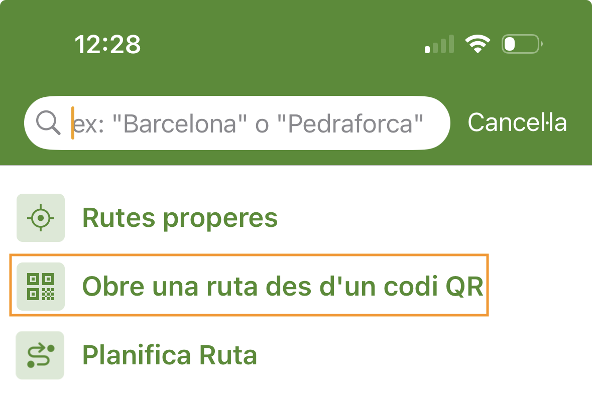 El trobaràs a la barra de cerca de rutes de l’app, com una opció al menú desplegable que apareix en fer clic a la barra de cerca.