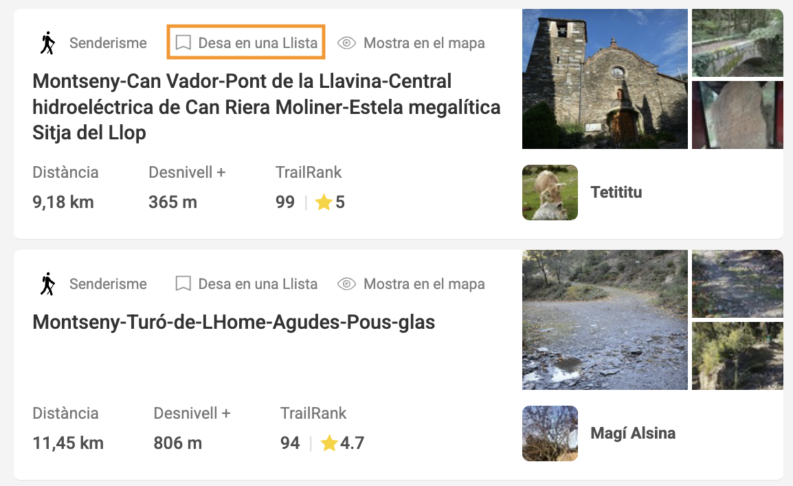 "Les teves llistes" és una bona manera de guardar les rutes que trobis a Wikiloc per més endavant i mantenir-les organitzades.