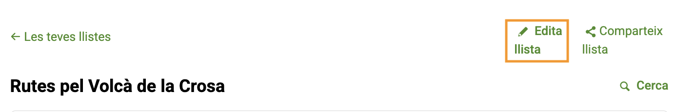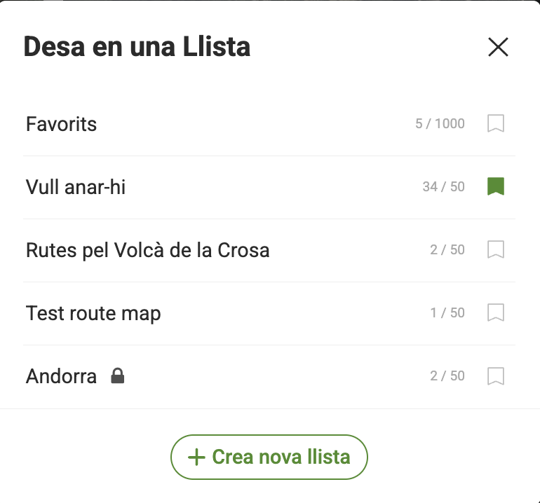 Tingues en compte que, tot i que marquis una llista com a privada, les rutes dins de la llista continuen sent visibles; només el nom de la llista és privat. Les rutes marcades com a privades no es poden afegir a altres llistes, sinó que només apareixen a la llista general 'Les teves rutes' i no són visibles per a altres usuaris.