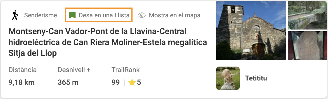 - Des de "Les teves llistes": accedeix a la llista de la qual vulguis eliminar la ruta i des-clica el botó "Desa en una Llista".